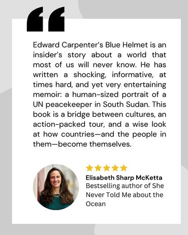 Edward H. Carpenter is a retired U.S. Marine who served in Afghanistan, Indonesia and beyond before becoming a UN peacekeeper in South Sudan. Disillusioned by the endless cycle of war, he retired from the military, earned a writing degree from Harvard, and today deploys his literary talents to challenge conventional narratives about war and peace. His writing about the failures of modern peacekeeping and the need for UN reform can be found in World Politics Review and the United Services Institute Journal, among others. Carpenter is also the Director of the global think tank WORLD WITHOUT WAR, to which he is donating his royalties from Blue Helmet.